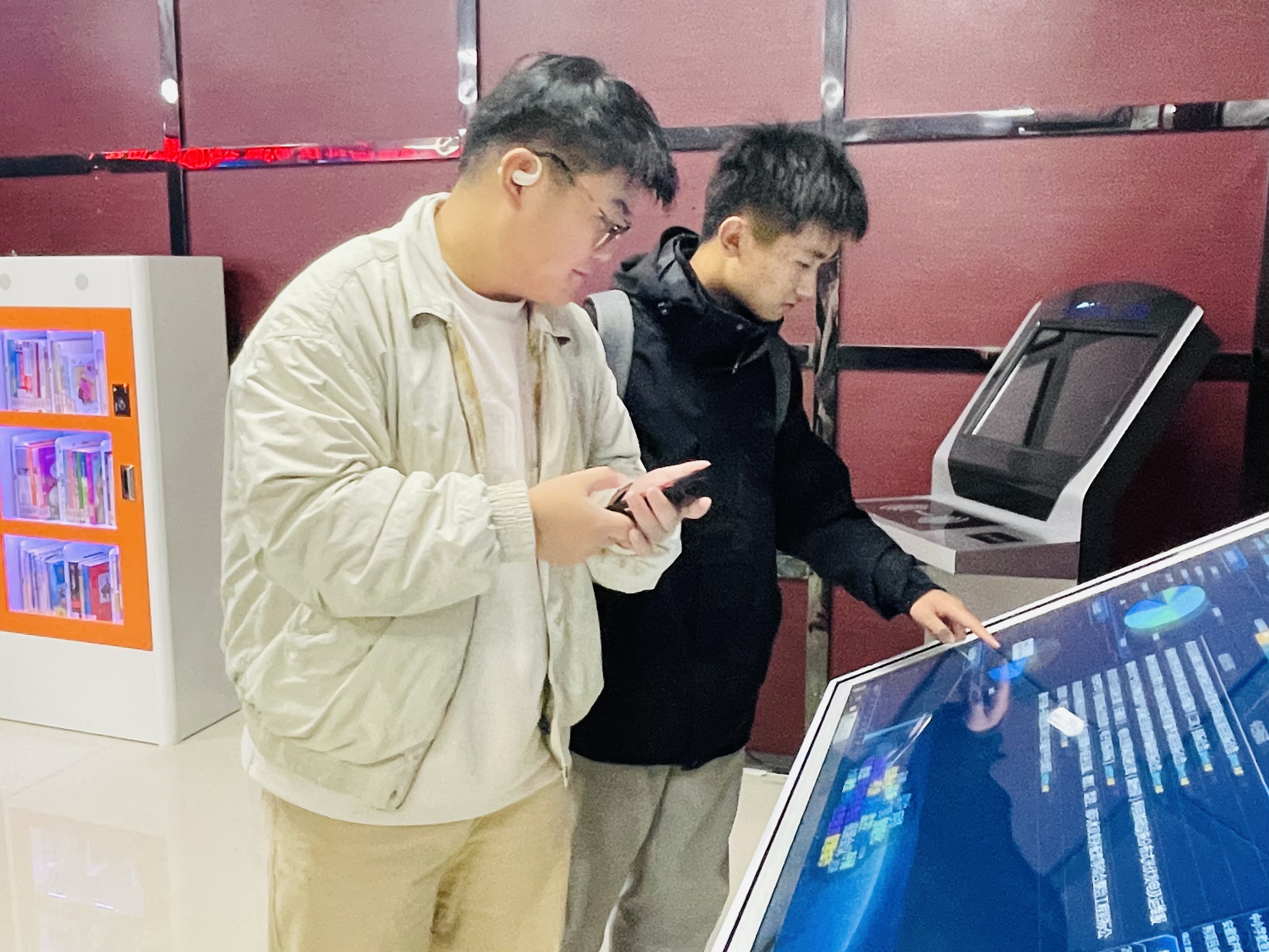 講解結(jié)束后,學(xué)生們?cè)诠ぷ魅藛T的帶領(lǐng)下,來(lái)到公司展廳參觀智能書(shū)柜,智能書(shū)柜作為國(guó)耀科技在智能物聯(lián)領(lǐng)域的創(chuàng)新展示,不僅彰顯了企業(yè)在技術(shù)前沿的探索與突破,更傳遞了對(duì)知識(shí)文化的深刻敬意與不懈追求。這種融合了現(xiàn)代科技與人文情懷的產(chǎn)品,吸引同學(xué)們的廣泛關(guān)注與濃厚興趣。駐足觀看的同學(xué)們,或許是被智能書(shū)柜便捷的操作方式所吸引,又或許是對(duì)其背后蘊(yùn)含的智能識(shí)別、物聯(lián)網(wǎng)通信等先進(jìn)技術(shù)感到好奇。