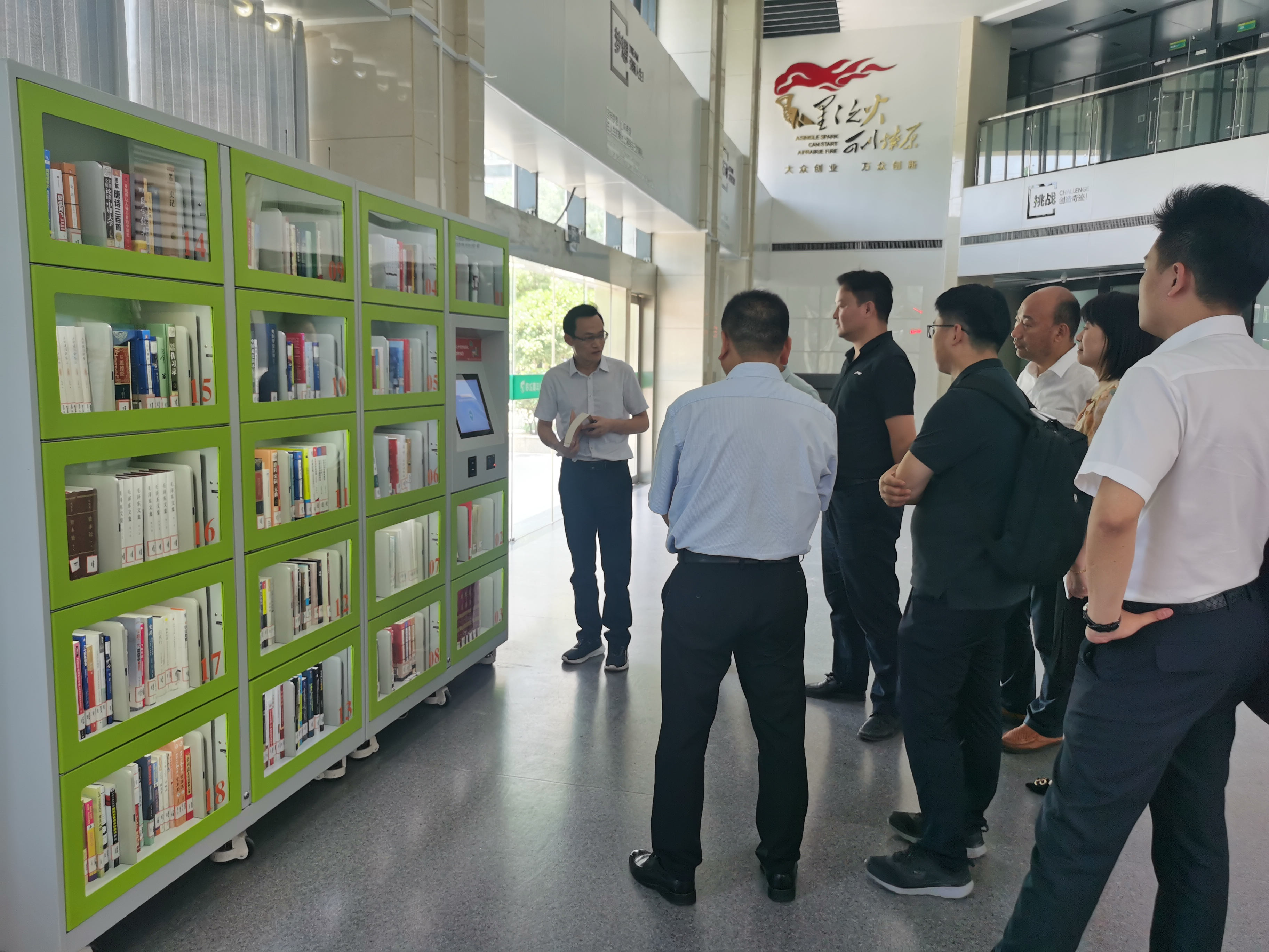 國耀公司總經(jīng)理陳浩全程陪同并向鄭總一行詳細介紹了國耀公司的發(fā)展歷程、經(jīng)營范圍、戰(zhàn)略規(guī)劃等,中通服和信科技有限公司鄭總對國耀公司的企業(yè)創(chuàng)新及發(fā)展表示高度贊揚,并對國耀公司自主研發(fā)的智能圖書柜產(chǎn)品給予充分肯定。