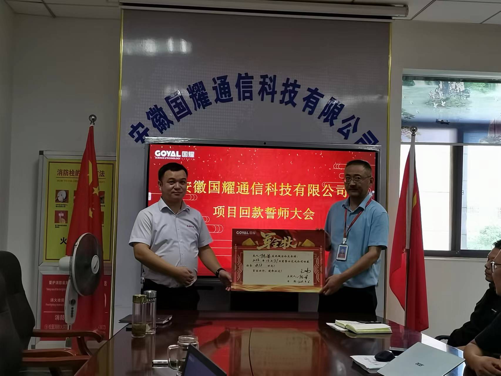 安徽國耀通信科技有限公司于9月6日下午在三樓會議室舉行了“拓市場、促回款”誓師大會。